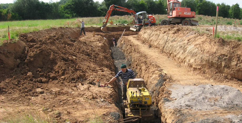 Sämtliche Erdarbeiten für das Verlegen von Ver- und Entsorgungsleitungen wie Wasser, Gas oder Strom.