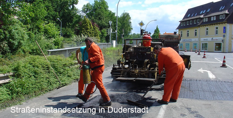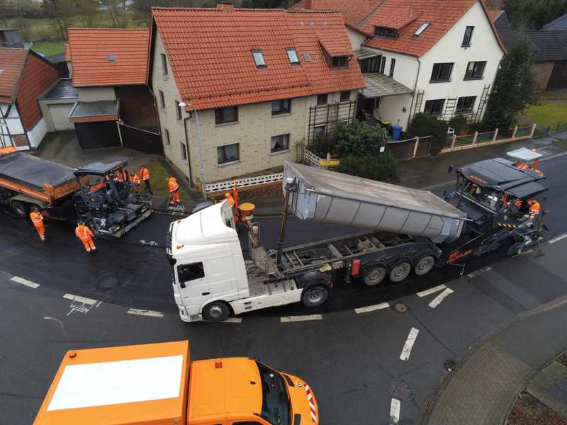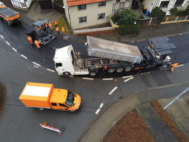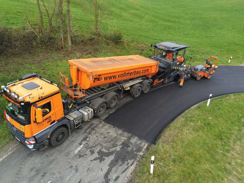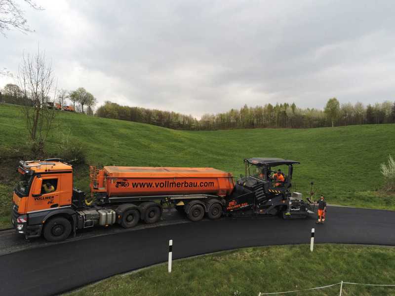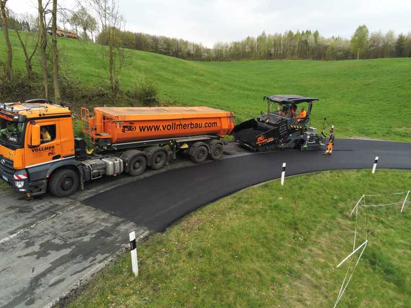 - Herstellung von Schwarzdecken für Straßen und Wege mit modernen Straßenfertigern.